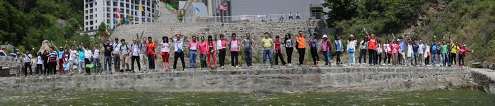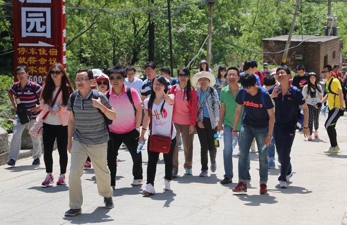 根據(jù)行程安排,活動(dòng)第一天大家攀爬了五岳寨“大圈”。 5月份的五岳寨氣候涼爽,景色怡人,在游覽美景的同時(shí),集團(tuán)還舉辦了小組和個(gè)人登山比賽,挑戰(zhàn)自我。大家不分彼此,團(tuán)結(jié)協(xié)作,都以征服這座海拔2000米的高峰為目標(biāo),盡情的攀登,還時(shí)時(shí)不忘互幫互助,濃濃的團(tuán)隊(duì)精神深深感染了每一個(gè)人。經(jīng)過(guò)近3個(gè)小時(shí)的攀爬和激烈爭(zhēng)奪,最終杜保凱、李凱星和常樂(lè)摘得登山比賽個(gè)人獎(jiǎng)前三名的桂冠;任曉磊組、張媛媛組、杜靜組三個(gè)小組分獲登山比賽團(tuán)體獎(jiǎng)前三名。成功攀登到山頂?shù)娜藗?,歡聚在大自然的懷抱中,禁不住歡呼雀躍,盡情的品味著“一覽眾山小”的樂(lè)趣。
