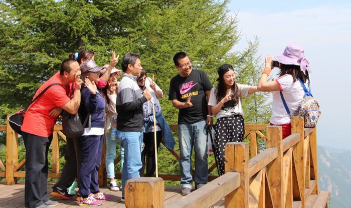 5月16日早上7點(diǎn)鐘,大家在導(dǎo)游的陪同下從公司準(zhǔn)時(shí)出發(fā)趕赴五岳寨風(fēng)景區(qū)。五岳寨旅游區(qū)位于河北省靈壽縣西北部山區(qū),南距省會(huì)石家莊110公里,北與佛教圣地五臺(tái)山隔山相望,總面積120平方公里,因五座山峰并列聳立,且有五岳之特點(diǎn)而得名。五岳寨山峰危兀并立、高低不一、形態(tài)各異,泉、溪、潭、瀑到處可見(jiàn),氣候涼爽宜人,俗有“伏天還把被子蓋”的說(shuō)法。聽(tīng)完導(dǎo)游的介紹,大家更是充滿(mǎn)了期待。兩個(gè)多小時(shí)的路程轉(zhuǎn)瞬即逝,抵達(dá)景區(qū)后大家集體合影留念。
