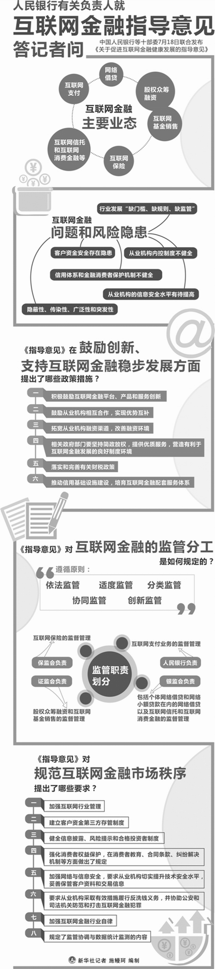 7月18日,《關(guān)于促進(jìn)互聯(lián)網(wǎng)金融健康發(fā)展的指導(dǎo)意見》正式對(duì)外發(fā)布。中國人民銀行有關(guān)負(fù)責(zé)人就《指導(dǎo)意見》相關(guān)問題進(jìn)行了解讀。