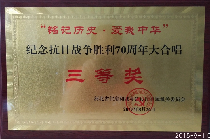 8月26日下午,由省住房和城鄉(xiāng)建設(shè)廳牽頭組織的“銘記歷史,愛我中華”紀(jì)念抗日戰(zhàn)爭(zhēng)勝利70周年合唱歌曲比賽在建設(shè)廳三樓大會(huì)議室圓滿舉行,本次比賽共有來自廳機(jī)關(guān)和直屬單位的13支參賽隊(duì)參賽,嘉聯(lián)集團(tuán)積極參加了本次比賽,并獲得三等獎(jiǎng)。