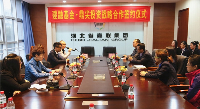 2015年10月21日,河北建融股權(quán)投資基金管理有限公司(以下簡(jiǎn)稱“建融基金”)與北京同創(chuàng)鼎尖投資管理有限公司(以下簡(jiǎn)稱“鼎尖投資”)在嘉聯(lián)集團(tuán)多媒體會(huì)議室簽署戰(zhàn)略合作協(xié)議。在京津冀一體化的大背景下,雙方今后將圍繞現(xiàn)代農(nóng)業(yè)、TMT、文化教育、節(jié)能環(huán)保、醫(yī)療衛(wèi)生等領(lǐng)域深耕細(xì)作,并著重在共同扶持河北省優(yōu)質(zhì)企業(yè)新三板上市方面加強(qiáng)合作,共同助推區(qū)域經(jīng)濟(jì)快速發(fā)展。
